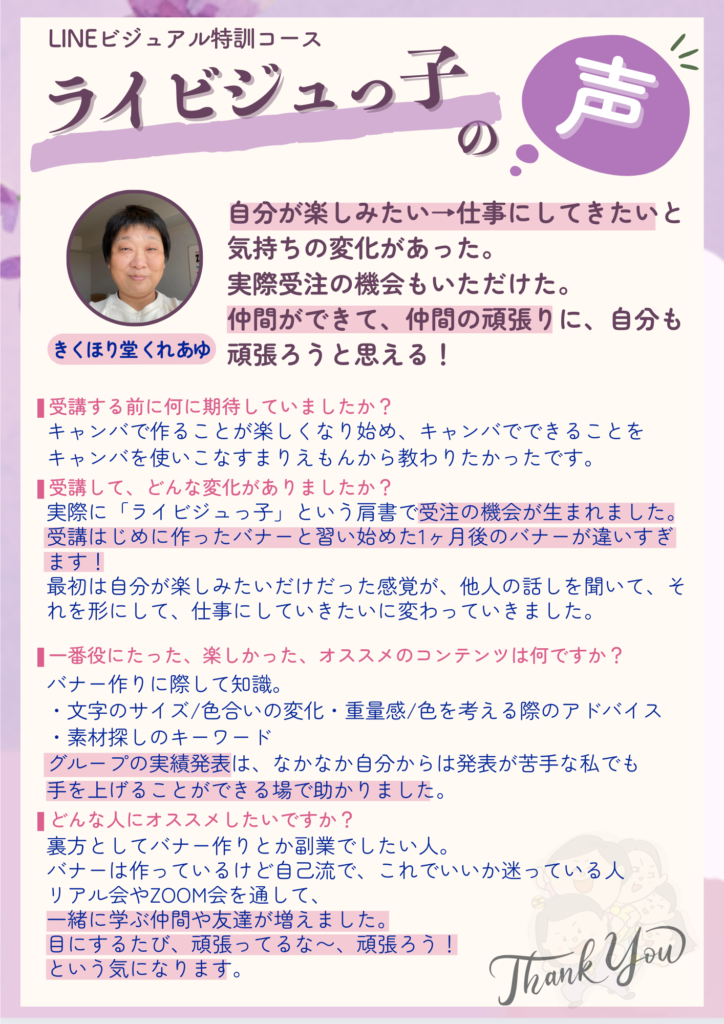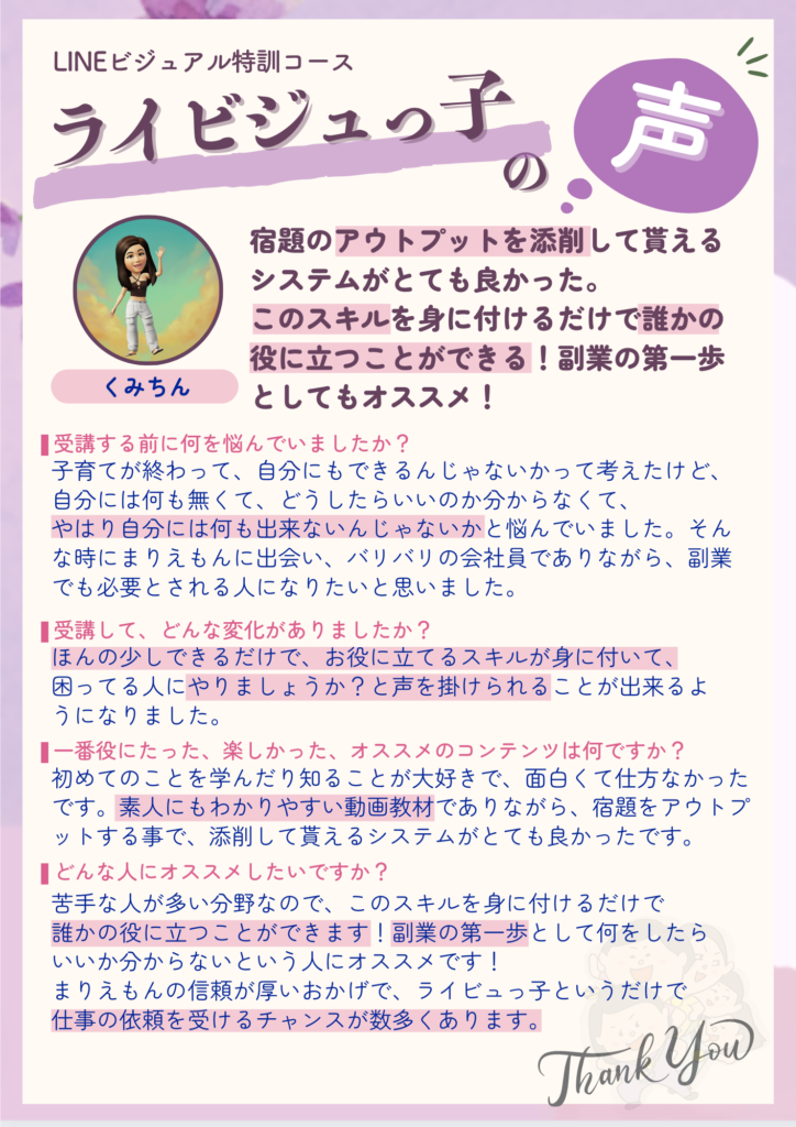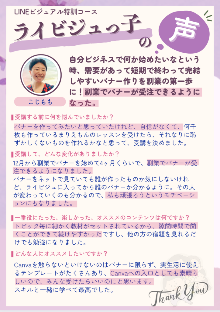 フロントページ 2023.06.152023.07.30 あなたのブラウザは動画タグをサポートしていません. あなたのブラウザは動画タグをサポートしていません. あなたのブラウザは動画タグをサポートしていません. 副業バナー制作で会社員月収2.5倍超!大人気バナー職人 こじもも ビジュアルでもライティングでも魅力を引き出す!週末副業ライター あらてぃー バナーに使える写真撮影も得意!フレンドリーフォトグラファー あこりん ダサいままで月商600万円飛ぶ鳥を落とす勢い ターキー オープンマインドでビジネスもパートナーシップもすべてうまくいく精神科医 野又美乃 貴族タイプのハイスペリケジョ会社員らてちゃん 起業家さんから太鼓判!脱サラ敏腕秘書 とーこちゃん